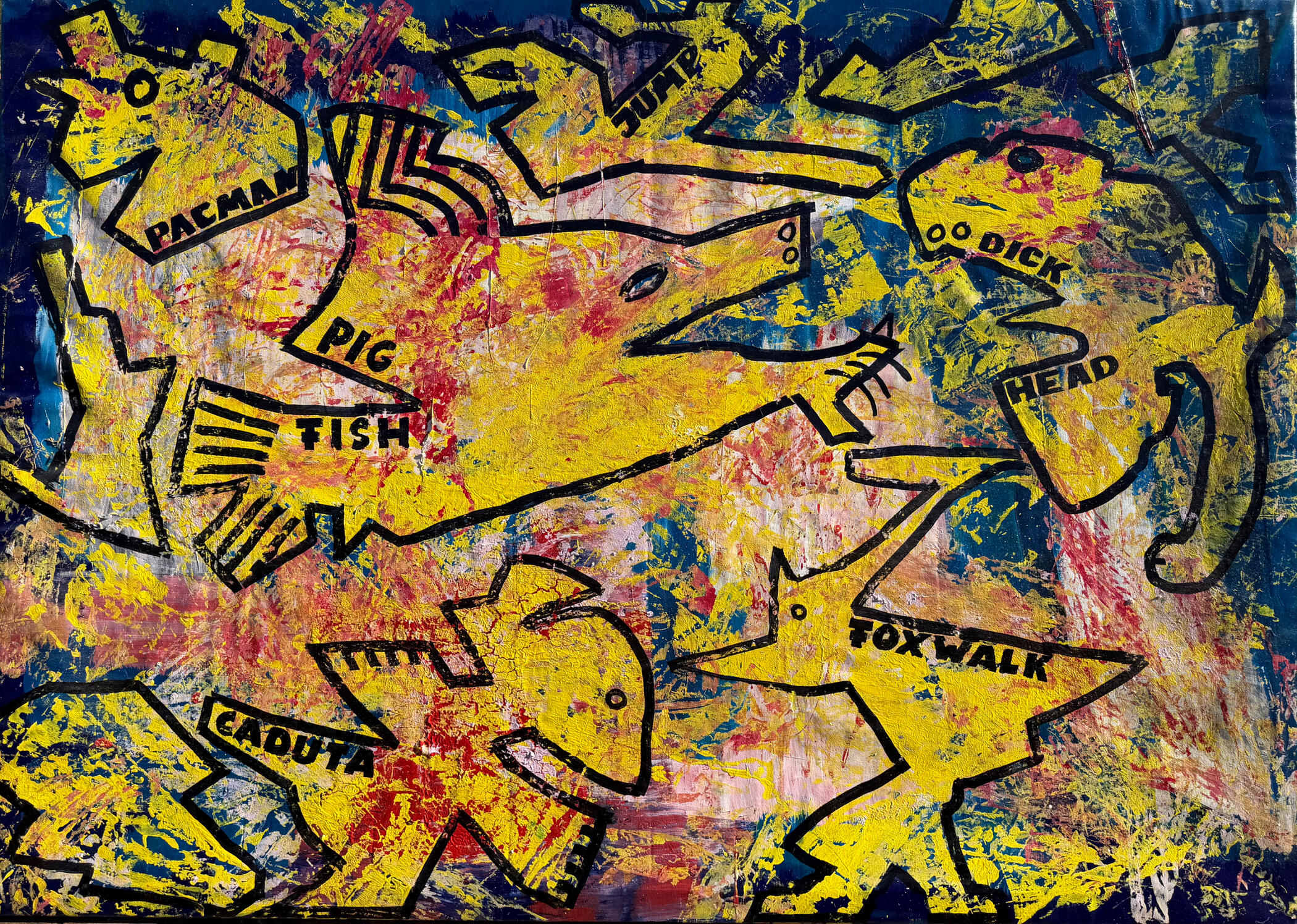here is another thing that refuses to settleI made it by throwing different kinds of paint at a surface and then tracing whatever insisted on appearing.